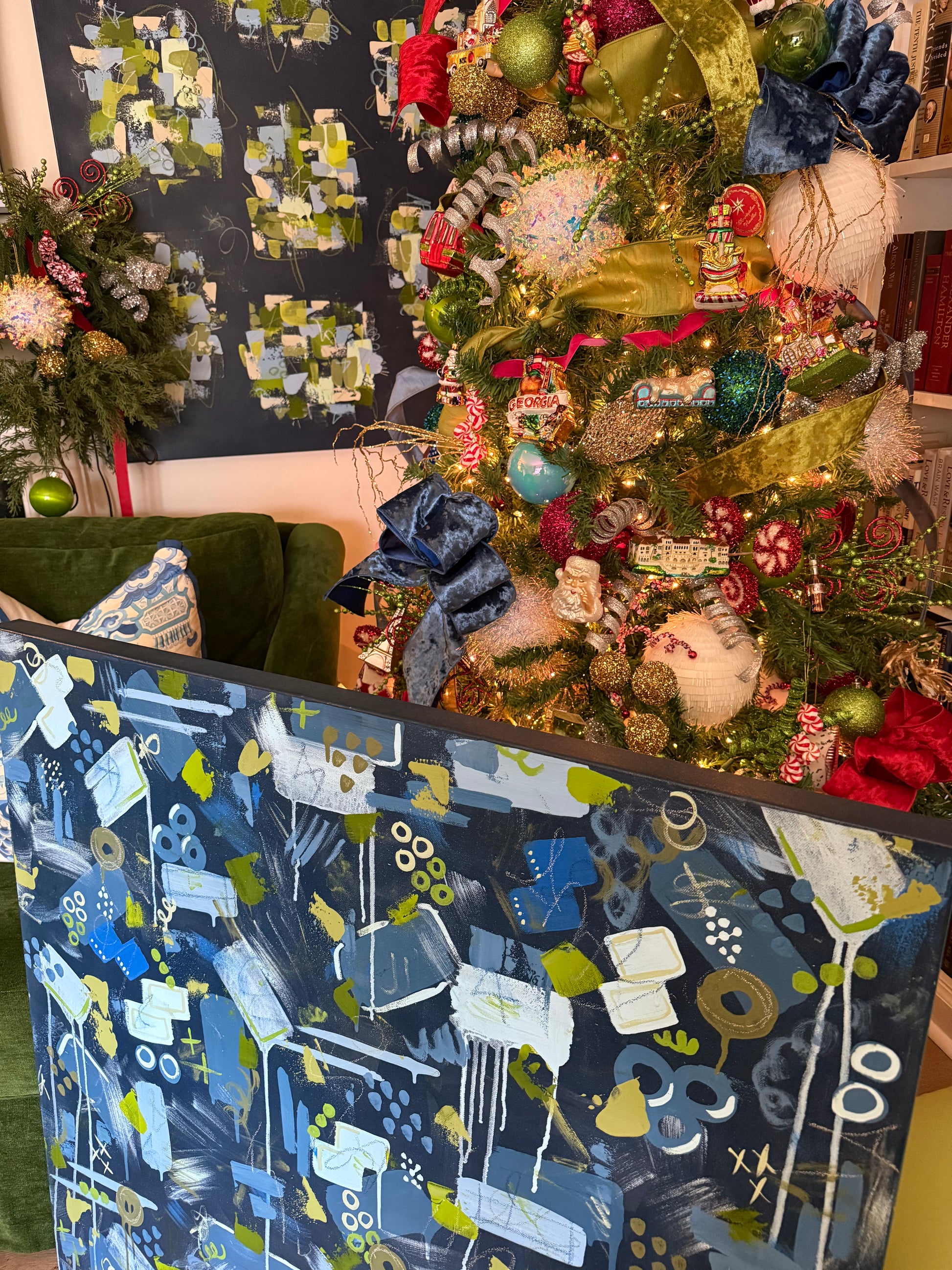 Original abstract painting on 36x36 gallery wrapped canvas. This piece is signed, dated, and named by the artist with details written on the back of the piece. Ready for hanging, the piece is available for shipping or pick-up in the Atlanta area.