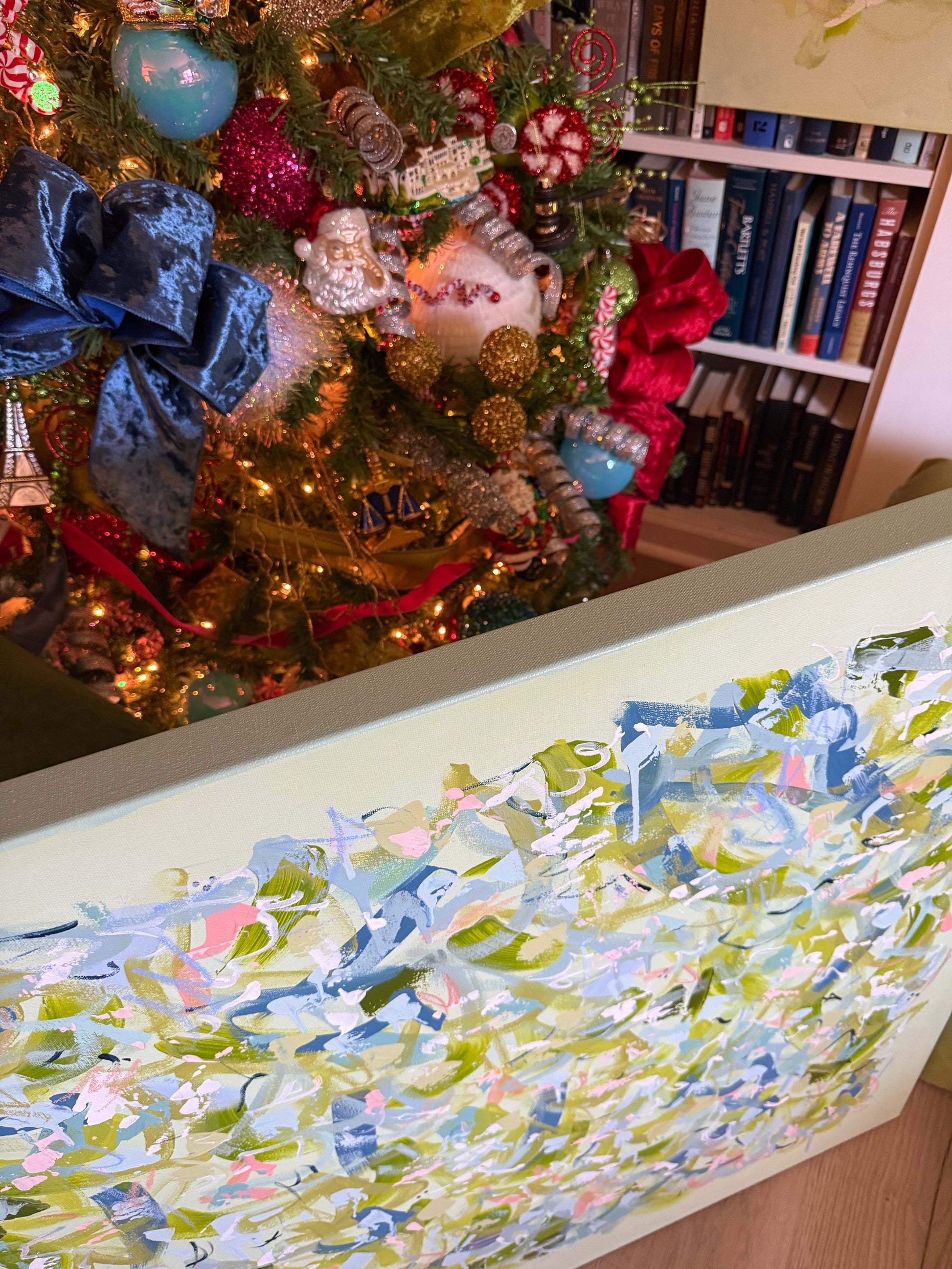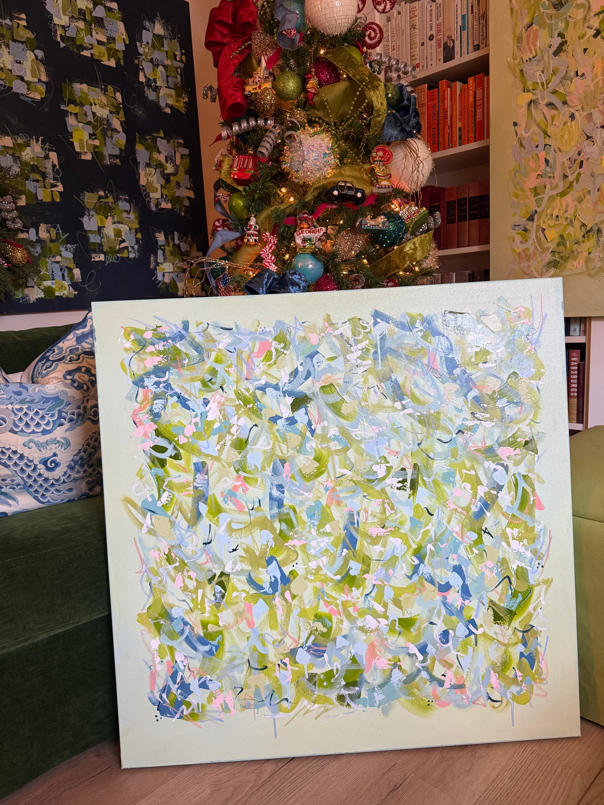 Original abstract painting on 36x36 gallery wrapped canvas. This piece is signed, dated, and named by the artist with details written on the back of the piece. Ready for hanging, the piece is available for shipping or pick-up in the Atlanta area.